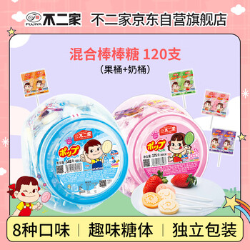不二家 混合水果味棒棒糖 375g(60支)桶装 儿童糖果 休闲零食 儿童零食