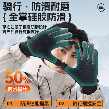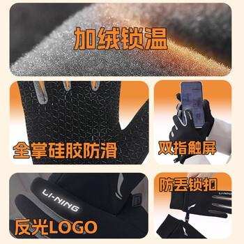 李宁(LI-NING)骑行手套冬季男女保暖加绒电动摩托自行车手套防冻防寒风登山滑雪