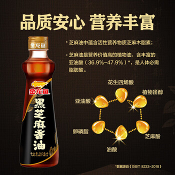 金龙鱼黑芝麻香油160ml【一级】纯黑芝麻物理压榨 调味火锅头发黑油油