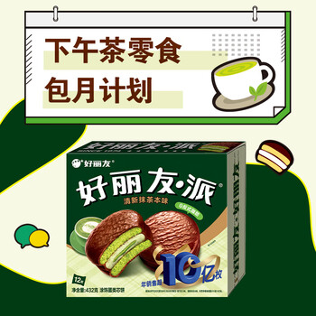 好丽友(ORION)巧克派清新抹茶派12枚432g 营养早餐面包蛋糕休闲零食办公室解馋