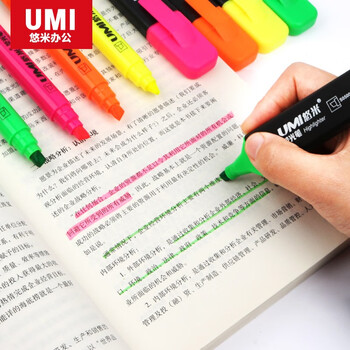 【开学必备】安兴 悠米 时尚醒目扁杆荧光笔6mm S05001O 橙10支装