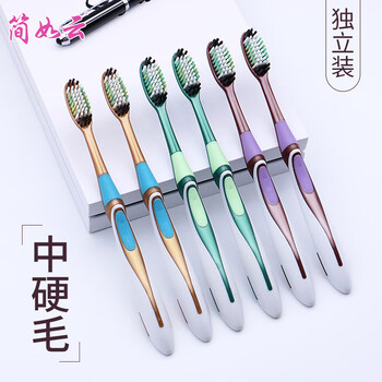 简如云中硬毛牙刷中毛中性大头6支独立装男士专用女士成人家用颜色随机