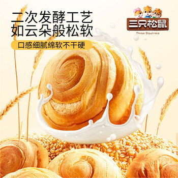 三只松鼠手撕面包 早餐面包代餐休闲零食酵母小面包量贩装约16包800g/箱