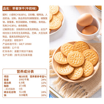 嘉士利牛奶味早餐饼干1000g/盒*1