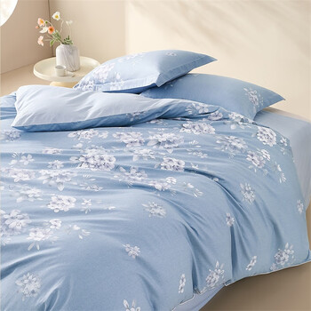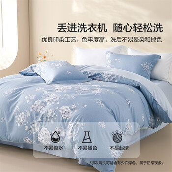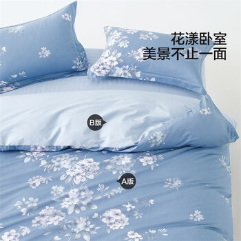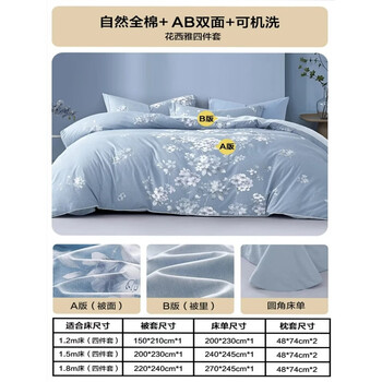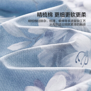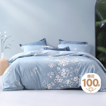 水星家纺四件套床上纯棉100%全棉透气被套床单双人1.5米x2米床花西雅家居馆