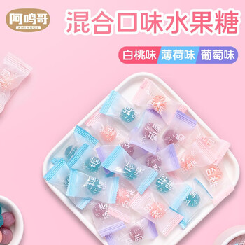 阿鸣哥 水果糖混合口味500g硬糖休闲零食糖果白桃味+薄荷味+葡萄味