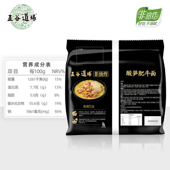 五谷道場非油炸方便面 酸笋肥牛面五连包129gx5袋装 泡面休闲零食早餐泡面