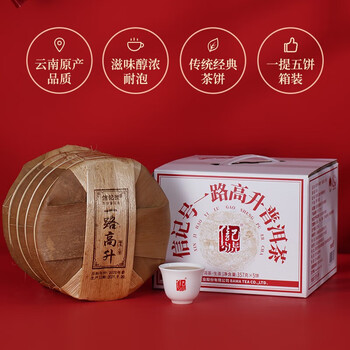 八马茶业信记号中华老字号普洱茶 临沧生普茶叶357g*5饼 2020年提装 送礼