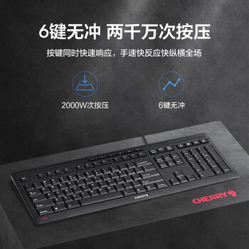 CHERRY樱桃STREAM键盘有线轻音办公商务家用磨砂质感SX剪刀脚笔记本手感十大功能按键键盘黑色