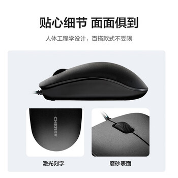 CHERRY樱桃 MC1000有线鼠标商务办公家用鼠标人力工学对称设计轻量化高分辨率1200DPI白色