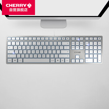 CHERRY樱桃 KC6000薄膜键盘 办公键盘 超薄SX剪刀脚 商务家用电脑有线轻音全尺寸 银色