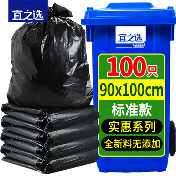 宜之选平口垃圾袋黑色90*100cm100只单层1.2丝加大号加厚物业办公商用袋