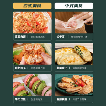 主机*1 托盘*1 推料棒*1 杯盖*1 切馅杯*1 接馅杯*1 搅拌刀/轴套*1 刮刀/刷*1