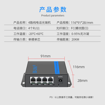 电话光端机*1对,电源*2个,说明书*1本,合格证*1个