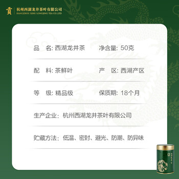 贡牌茶叶 明前精品级西湖龙井茶50g×1