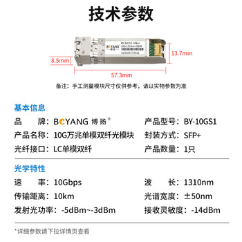 博扬(BOYANG)BY-10GS1 SFP+光模块万兆10G单模双纤光纤模块(1310nm,10km,LC)适配华为交换机