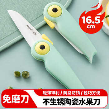 美厨(maxcook)陶瓷刀水果刀 折叠小刀便携水果削皮刀宝宝辅食刀具小鸟款MCD2250