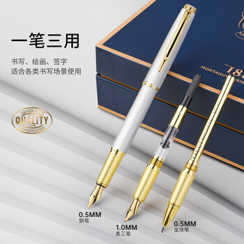 梦特娇(MONTAGUT)【马年礼物】钢笔明尖特细签字笔男女学生成人办公礼品墨水礼盒套装睿智系列白丽雅