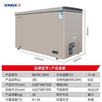 星星(XINGX)301升 单温家用冷柜冰柜减霜80%二级能效预涂内胆 BD/BC-301R