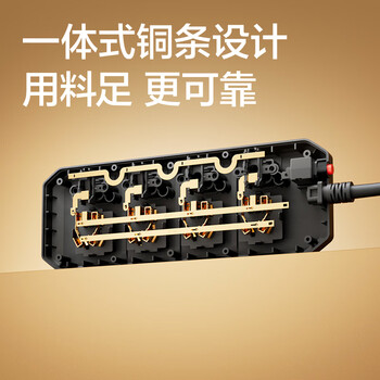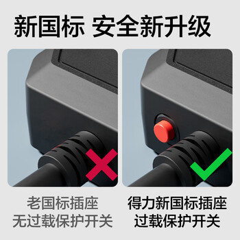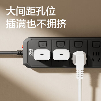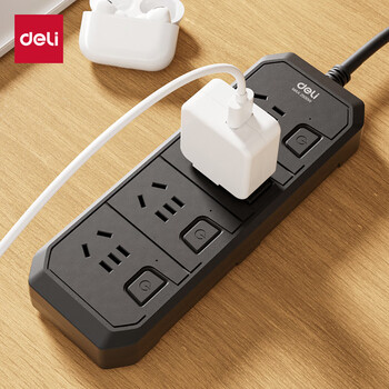 得力(deli)3C认证国标安全插座/插排/插线板/排插/接线板 4位独立开关 分控 全长2米 黑色 18340(02)
