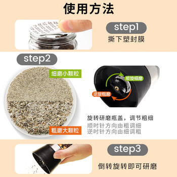 川珍海盐黑胡椒粒研磨瓶160g 牛排沙拉鸡胸肉健身餐轻食调料烧烤撒料