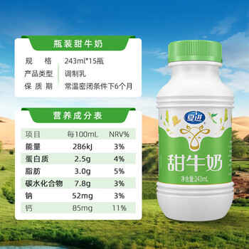 夏进 甜牛奶 243ml*15瓶 整箱装
