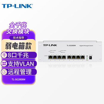 普联(TP-LINK)千兆交换机8口小型网络弱电箱模块可网管型支持VLAN云管理铁壳TL-SG2008M
