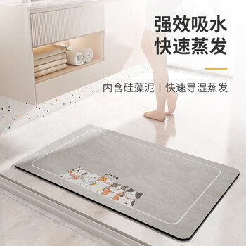 七七家浴室吸水脚垫卫生间门口防滑硅藻泥地垫厕所洗手间速干50*80cm