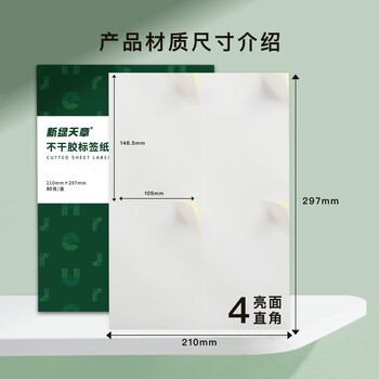 天章 (TANGO)A4不干胶铜版打印纸黄底亮面背胶纸标签贴纸 A4激光打印贴纸直角4枚/张(105mm*148.5mm)80张/盒