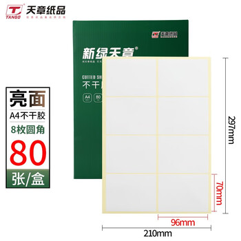 天章 (TANGO)A4不干胶铜版打印纸黄底亮面背胶纸标签贴纸 A4激光打印贴纸圆角8枚/张(96mm*70mm)80张/盒