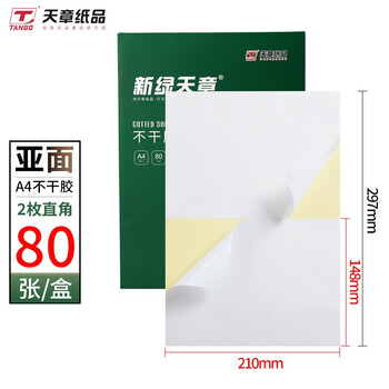 天章 (TANGO)A4不干胶打印纸 黄底哑面80张/盒 直角2枚/张(210mm*148.5mm) 背胶纸标签贴纸 A4喷墨打印贴纸