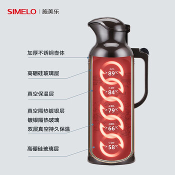 SIMELO施美乐保温壶不锈钢热水瓶玻璃内胆开水壶新北京暖壶2000ML本色