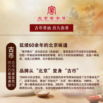 古币 芝麻香油 纯芝麻香油450ml 凉拌调味火锅油碟京粮出品北京老字号