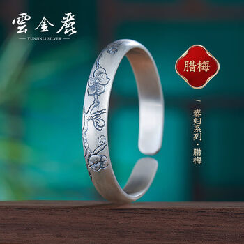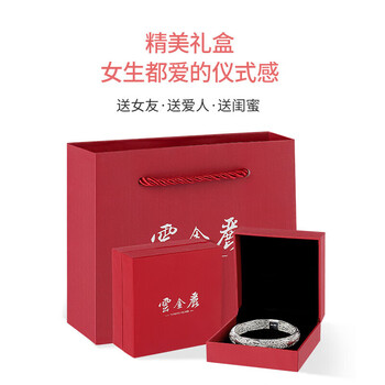 云金丽银手镯999足银女民族风做旧开口实心银镯子送妈妈长辈生日礼物