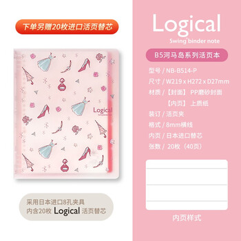 Nakabayashi仲林活页本可拆卸学生记事本 活页夹外壳含20张活页替芯 河马岛系列 NB-B514-P