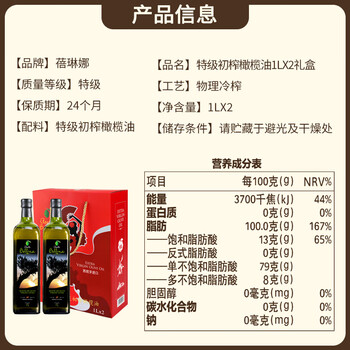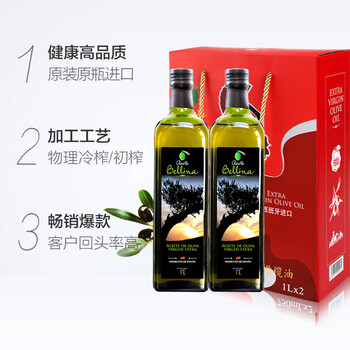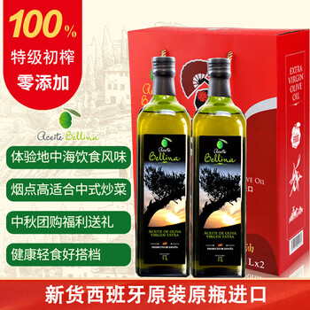 蓓琳娜(BELLINA)【保真橄榄油】欧洲原装进口100%特级初榨橄榄油1L*2礼盒团购送礼