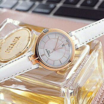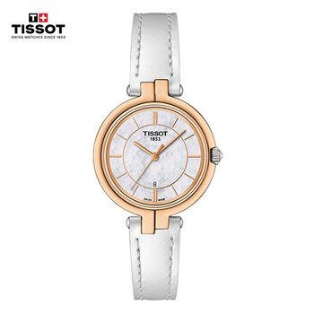 天梭手表 弗拉明戈系列女表 瑞士石英女士皮带腕表时尚表生日礼物