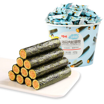 百草味海苔肉松卷分享桶400g约50根 休闲零食寿司海苔脆儿童拌饭