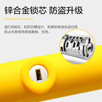 永久自行车锁U型电动车锁骑行装备配件硅胶防盗钥匙锁S514黑黄色