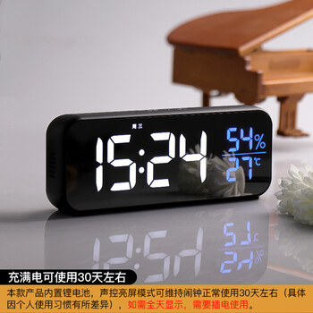 汉时(Hense)时尚电子闹钟智能声控充电时钟学生懒人闹表多功能台钟HA820黑色开学季