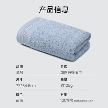 金号毛巾 纯棉洗脸巾 A类纯棉素色毛巾1条蓝色72*34.5cm/105g