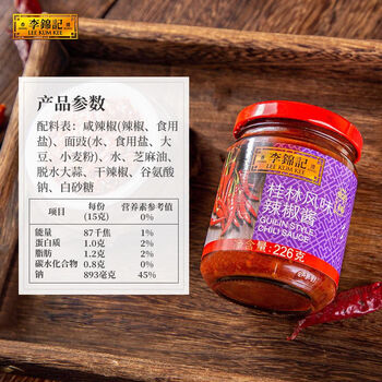 李锦记 桂林风味辣椒酱226g【广西名椒】下饭酱 拌饭拌面火锅烧烤辣酱