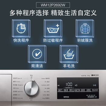 西门子(SIEMENS)iQ300 10KG大容量全自动滚筒洗衣机 BLDC变频电机 专业羽绒洗 混合洗 防过敏 WM12P2692W
