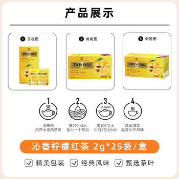 英国川宁(TWININGS) 沁香柠檬红茶25包*2g 波兰进口茶叶袋泡茶包*1