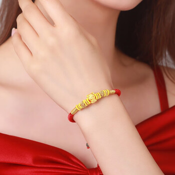 蒂蔻(Tico)生日礼物本命年虎年足金报福虎生肖黄金转运珠手链金虎编织红绳