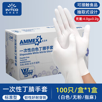 爱马斯(AMMEX)一次性手套丁腈手套100只大码餐饮家务清洁厨房白色丁晴橡胶手套
