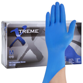 家庭清洁/纸品---清洁用具---手套/鞋套/围裙爱马斯(AMMEX)爱马斯 XNFST【耐用型】蓝色手套 M码