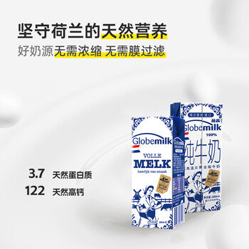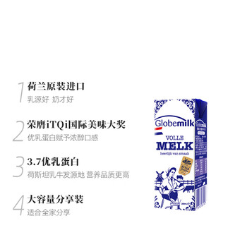 荷高(Globemilk)全脂纯牛奶200ml*24 荷兰原装进口 高钙3.7乳蛋白