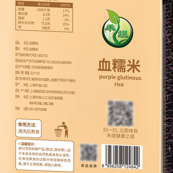 禾煜 血糯米 2斤(黑糯米 粗粮杂粮 腊八粥米 米饭伴侣 真空装)