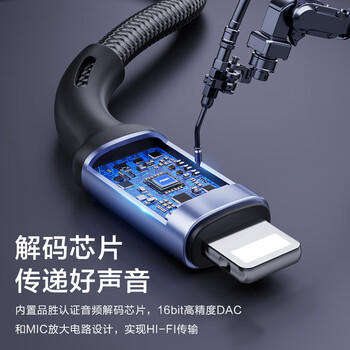 品胜苹果车载aux音频线lightning转3.5mm转接数据线通用苹果iPhone14/13手机平板接耳机车用音响音箱